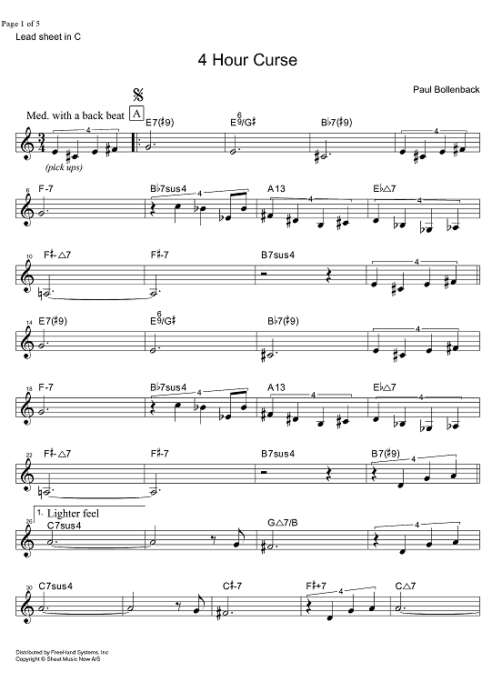 Digital Sheet Music for 4 Hour Curse - C Instruments by Paul Bollenback scored for Lead Sheet; id:331488