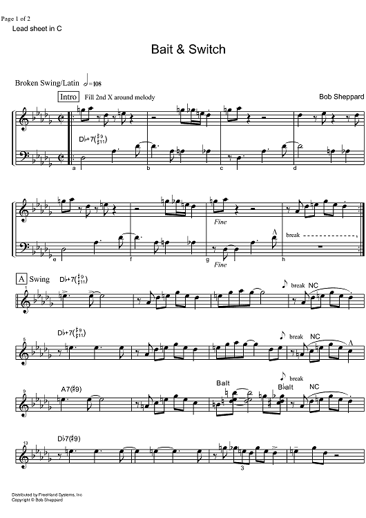 Digital Sheet Music for Bait and Switch - C Instruments by Bob Sheppard scored for Lead Sheet; id:326592