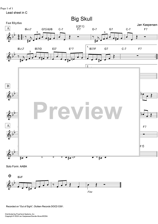 Digital Sheet Music for Big Skull - C Instruments by Jan Kaspersen scored for Lead Sheet; id:352587