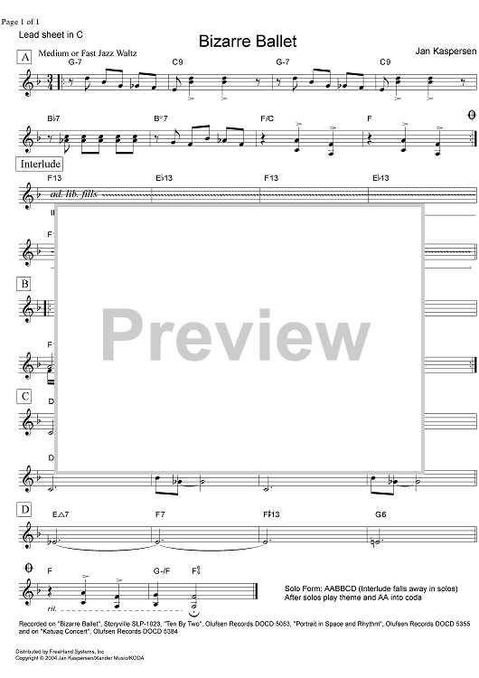 Digital Sheet Music for Bizarre Ballet - C Instruments by Jan Kaspersen scored for Lead Sheet; id:352588