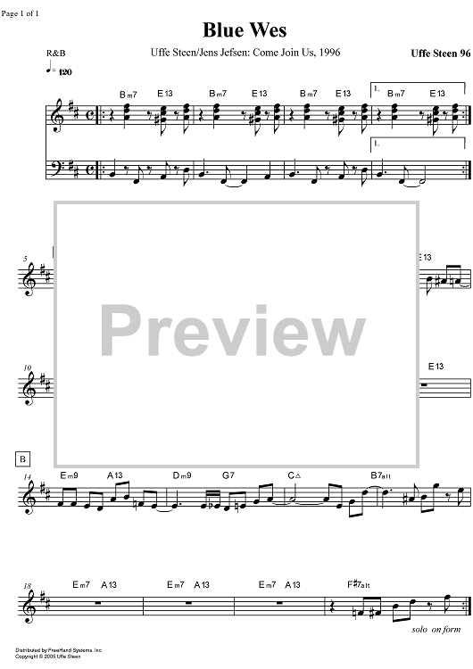 Digital Sheet Music for Blue Wes - C Instruments by Uffe Steen scored for Lead Sheet; id:353977