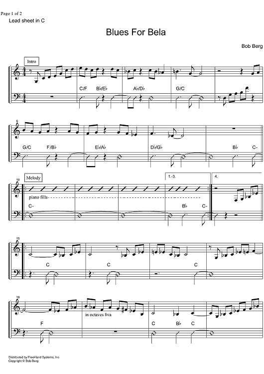 Digital Sheet Music for Blues for Bela - C Instruments by Bob Berg scored for Lead Sheet; id:322494