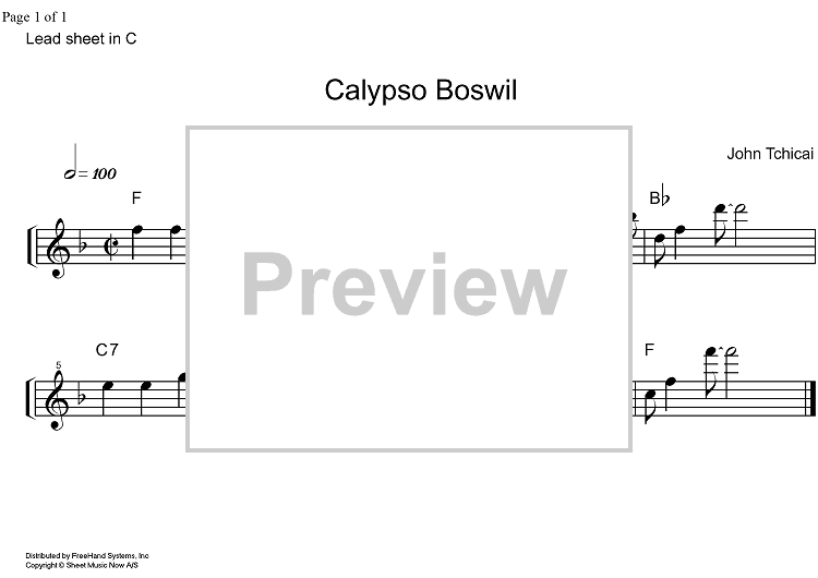 Digital Sheet Music for Calypso Boswil - C Instruments by John Tchicai scored for Lead Sheet; id:323232
