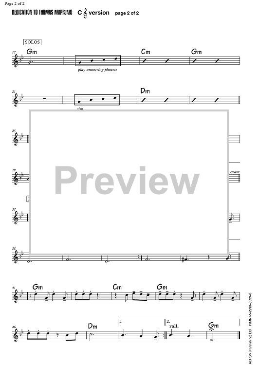 "Dedication to Thomas Mapfumo - C Instruments" Sheet Music by Don Cherry