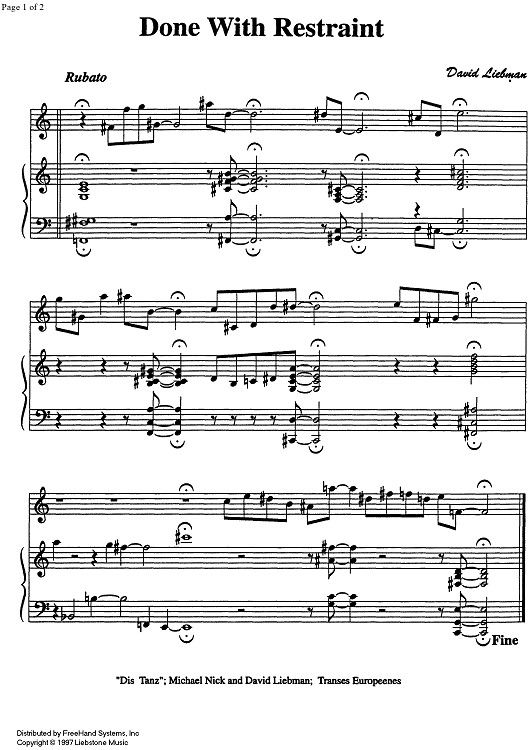 "Done with Restraint - C Instruments" Sheet Music by David Liebman