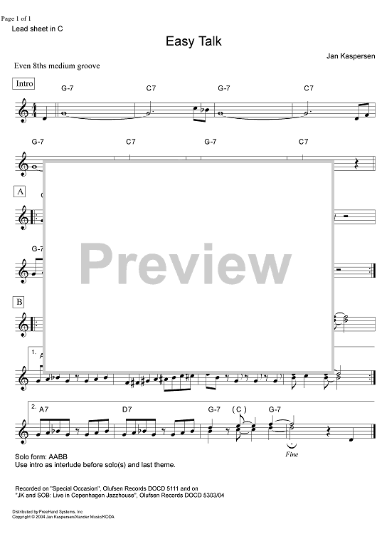 Digital Sheet Music for Easy Talk - C Instruments by Jan Kaspersen scored for Lead Sheet; id:352596