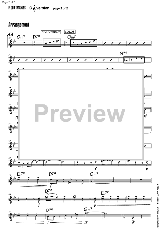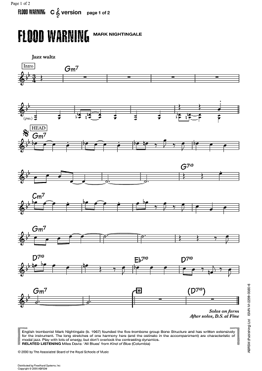 Digital Sheet Music for Flood Warning - C Instruments by Mark Nightingale scored for Lead Sheet; id:355468