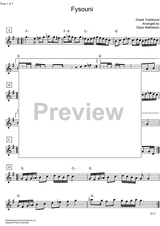 Digital Sheet Music for Fysouni - C Instruments by Claus Mathiesen, Traditional scored for Lead Sheet; id:323025