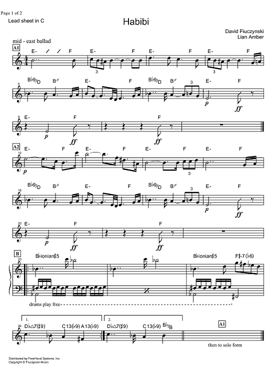 Digital Sheet Music for Habibi - C Instruments by Lian Amber, David Fiuczynski scored for Lead Sheet; id:326749