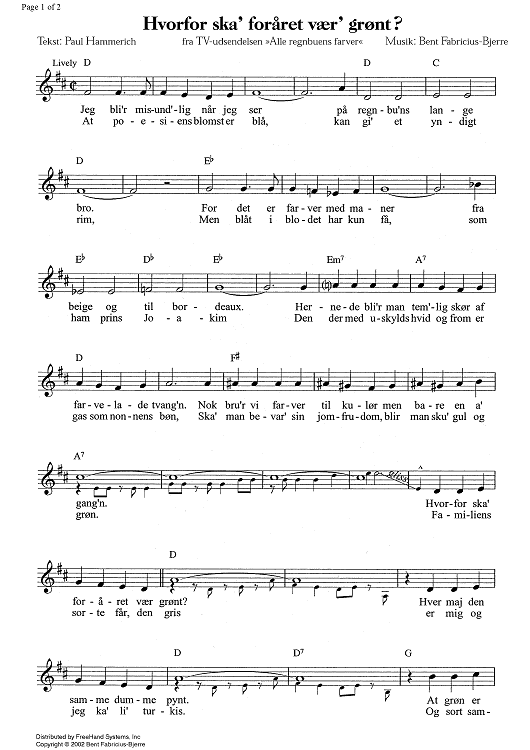 Digital Sheet Music for Hvorfor ska' foraaret vaer' gront? - C Instruments by Bent Fabric scored for Lead Sheet; id:338639