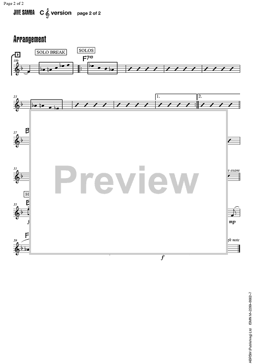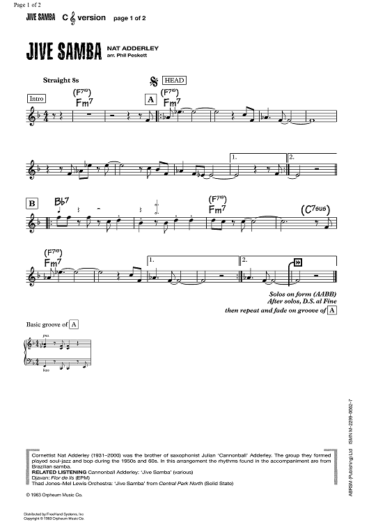 "Jive Samba - C Instruments" Sheet Music by Nat Adderley