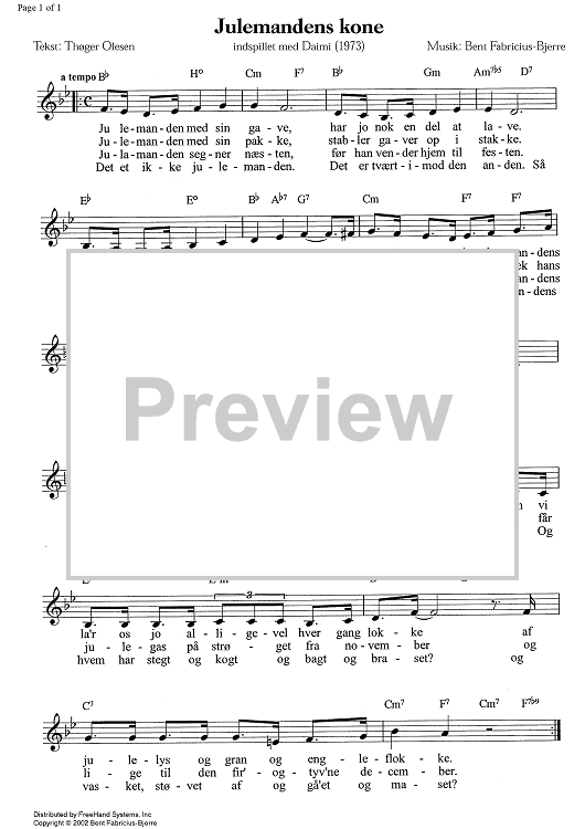 Digital Sheet Music for Julemandens kone - C Instruments by Bent Fabric scored for Lead Sheet; id:338585