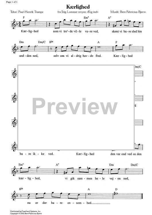 Digital Sheet Music for Kaerlighed - C Instruments by Bent Fabric scored for Lead Sheet; id:338590