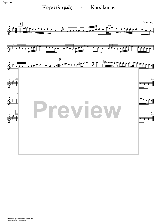 "Karsilamas - C Instruments" Sheet Music by Ross Daly