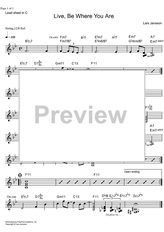 Digital Sheet Music for Live, Be Where You Are - C Instruments by Lars Jansson scored for Lead Sheet; id:332280