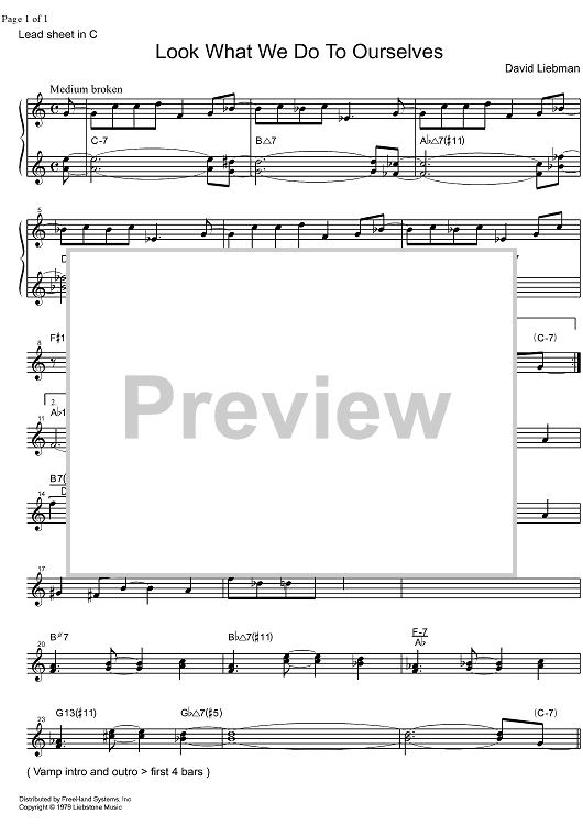 Digital Sheet Music for Look What We Do to Ourselves - C Instruments by David Liebman scored for Lead Sheet; id:332549