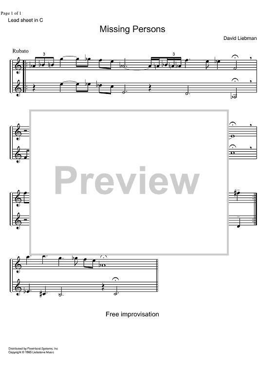 "Missing Persons - C Instruments" Sheet Music by David Liebman