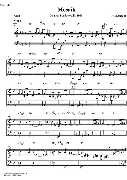 Digital Sheet Music for Mosaik - C Instruments by Uffe Steen scored for Lead Sheet; id:353991