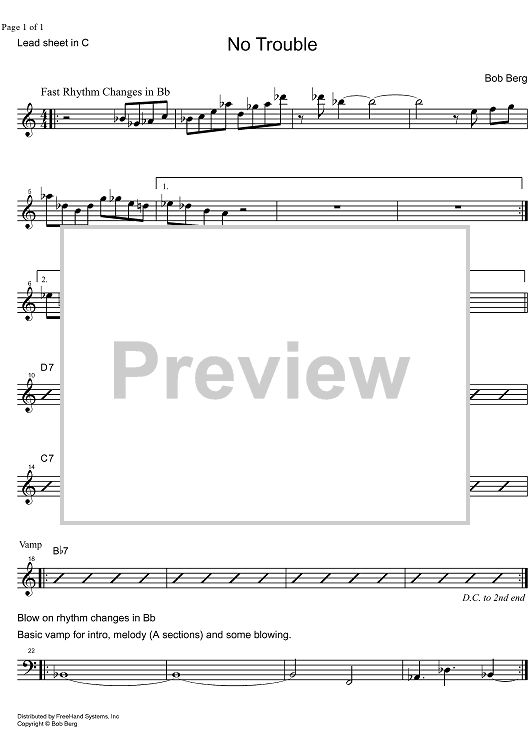 Digital Sheet Music for No Trouble - C Instruments by Bob Berg scored for Lead Sheet; id:328436