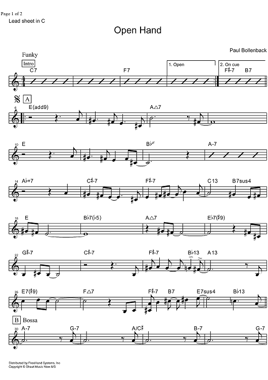 Digital Sheet Music for Open Hand - C Instruments by Paul Bollenback scored for Lead Sheet; id:331481