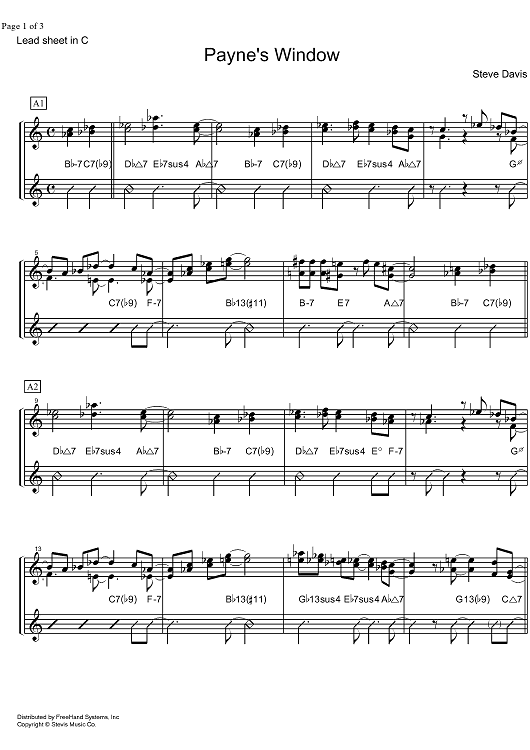 Digital Sheet Music for Payne's Window - C Instruments by Steve Davis scored for Lead Sheet; id:328407
