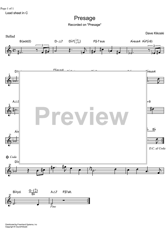Digital Sheet Music for Presage - C Instruments by Dave Kikoski scored for Lead Sheet; id:326632
