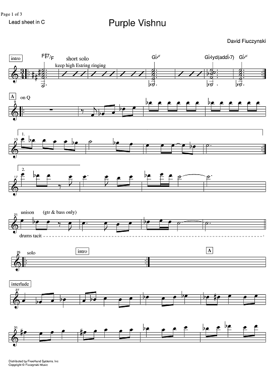 Digital Sheet Music for Purple Vishnu - C Instruments by David Fiuczynski scored for Lead Sheet; id:326660