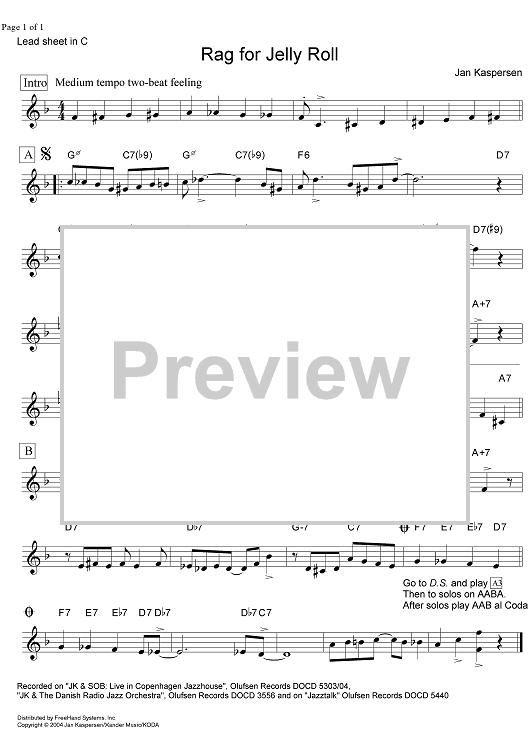 Digital Sheet Music for Rag for Jelly Roll - C Instruments by Jan Kaspersen scored for Lead Sheet; id:352609