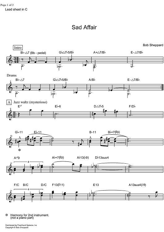 "Sad Affair - C Instruments" Sheet Music by Bob Sheppard