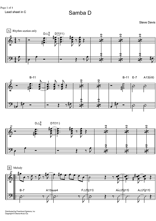 Digital Sheet Music for Samba D - C Instruments by Steve Davis scored for Lead Sheet; id:328406