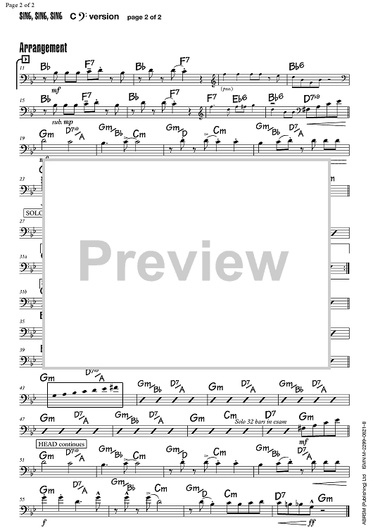 "Sing, Sing, Sing - C Instruments" Sheet Music by Benny Goodman