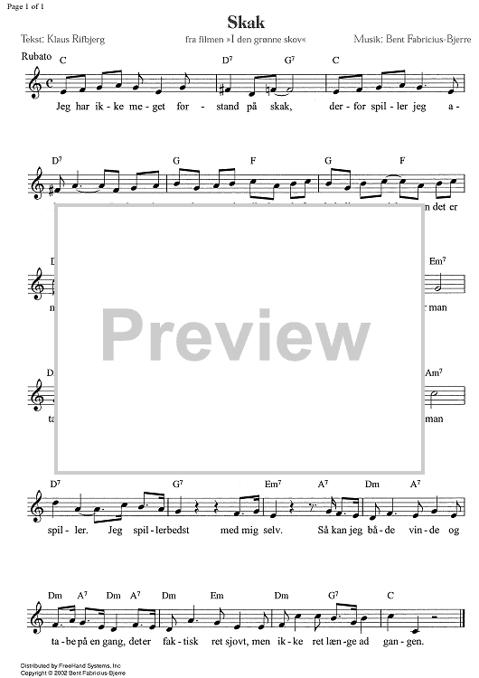 Digital Sheet Music for Skak - C Instruments by Bent Fabric scored for Lead Sheet; id:338654