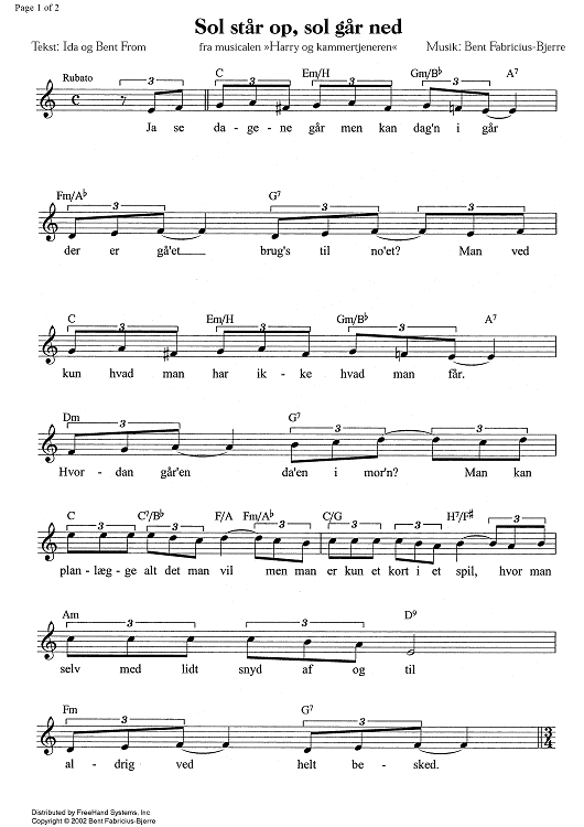 Digital Sheet Music for Sol staar op, sol gaar ned - C Instruments by Bent Fabric scored for Lead Sheet; id:338658