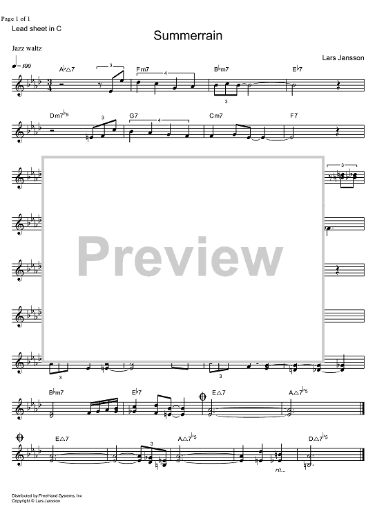 Digital Sheet Music for Summerrain - C Instruments by Lars Jansson scored for Lead Sheet; id:332287