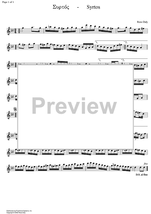 "Syrtos - C Instruments" Sheet Music by Ross Daly