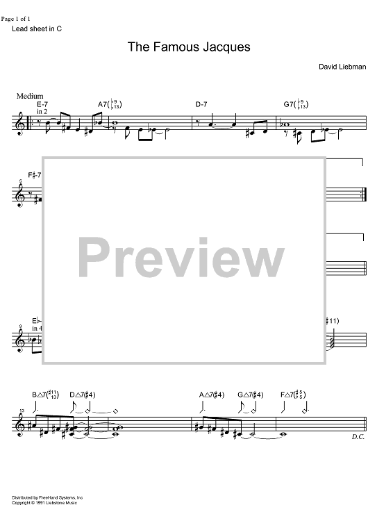 Digital Sheet Music for The Famous Jacques - C Instruments by David Liebman scored for Lead Sheet; id:330118