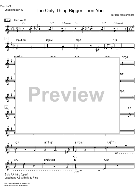 Digital Sheet Music for The Only Thing Bigger Than You - C Instruments by Torben Westergaard scored for Lead Sheet; id:326378
