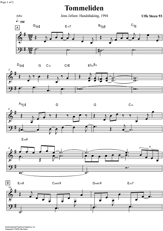 Digital Sheet Music for Tommeliden - C Instruments by Uffe Steen scored for Lead Sheet; id:354001
