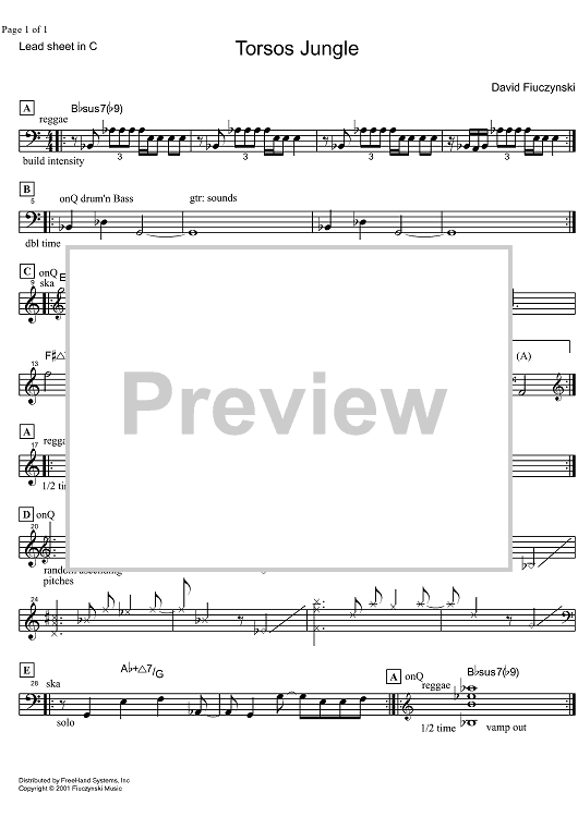 Digital Sheet Music for Torsos Jungle - C Instruments by David Fiuczynski scored for Lead Sheet; id:326657