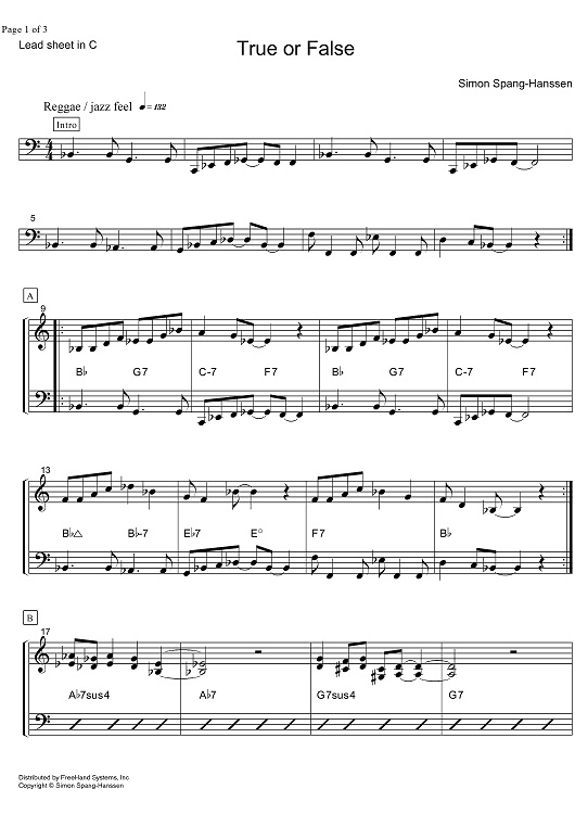 Digital Sheet Music for True or False - C Instruments by Simon Spang-Hanssen scored for Lead Sheet; id:328496