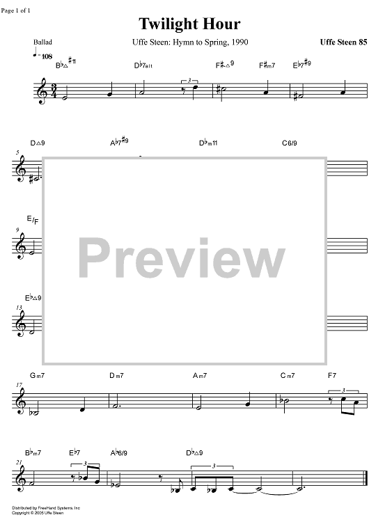 Digital Sheet Music for Twilight Hour - C Instruments by Uffe Steen scored for Lead Sheet; id:354002