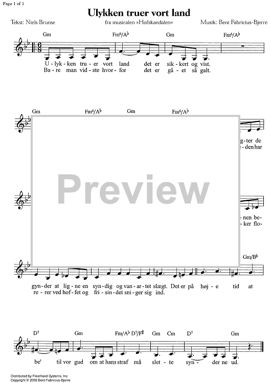 Digital Sheet Music for Ulykken truer vort land - C Instruments by Bent Fabric scored for Lead Sheet; id:338672