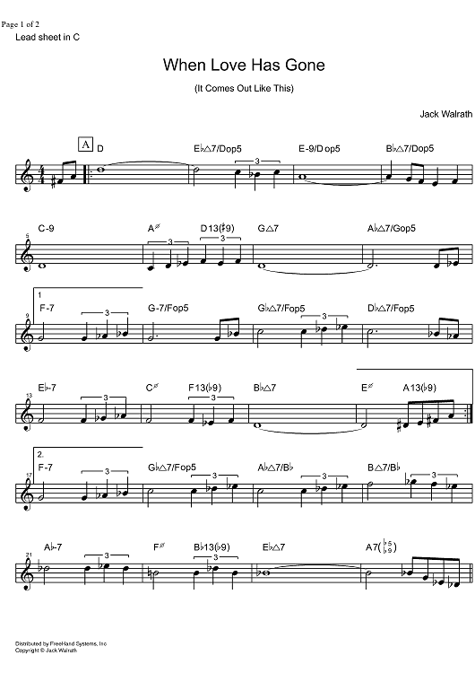 Digital Sheet Music for When Love has Gone (It Comes Out Like This) - C Instruments by Jack Walrath scored for Lead Sheet; id:326760