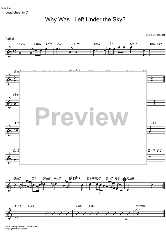Digital Sheet Music for Why Was I Left Under the Sky - C Instruments by Lars Jansson scored for Lead Sheet; id:332278