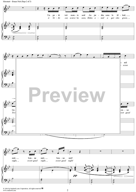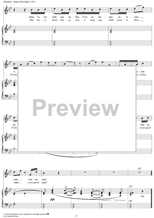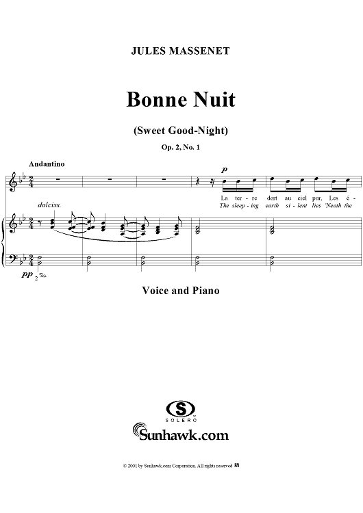 "Bonne Nuit (Sweet Good-Night), No. 1 from "Trois mélodies"" Sheet Music by Jules Massenet