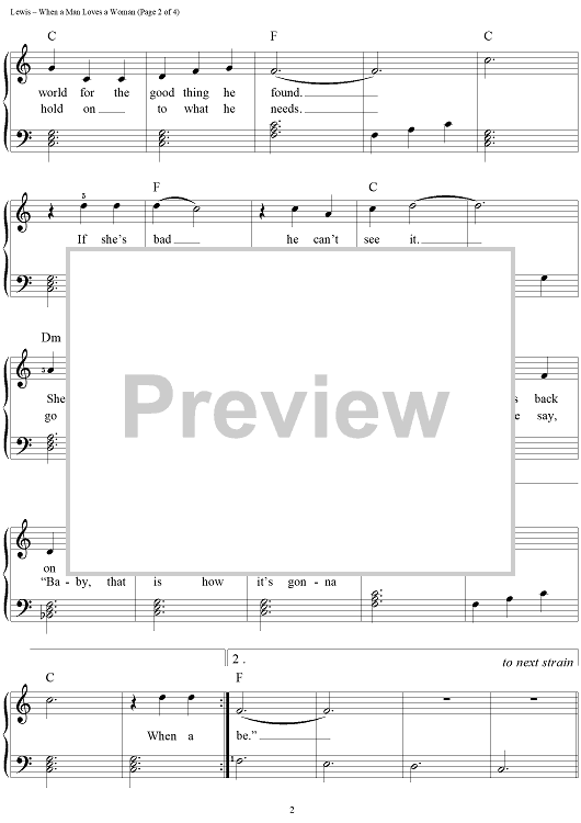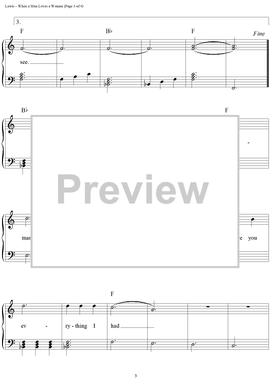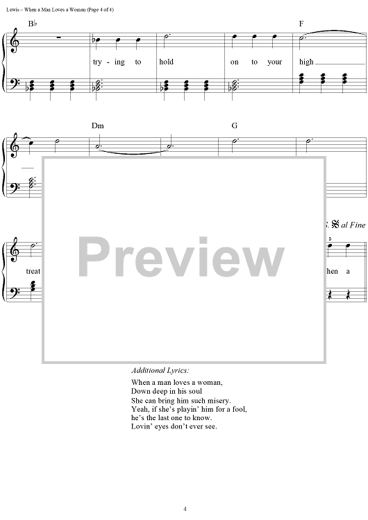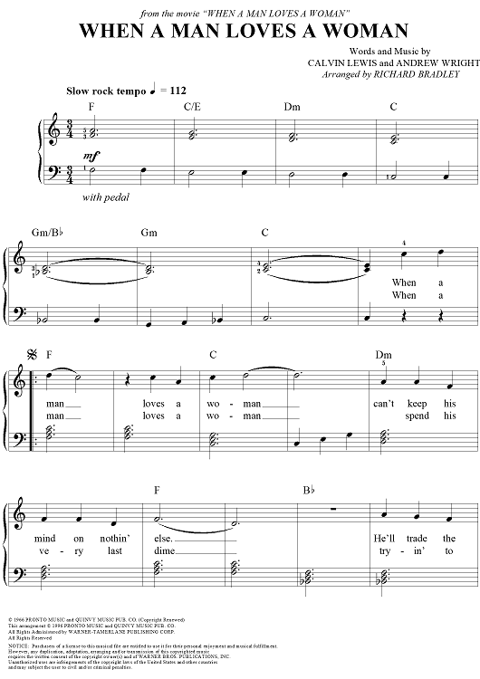 Digital Sheet Music for When A Man Loves A Woman by Richard Bradley, Calvin Lewis, Andrew Wright, Percy Sledge scored for Easy Piano/Vocal; id:120634