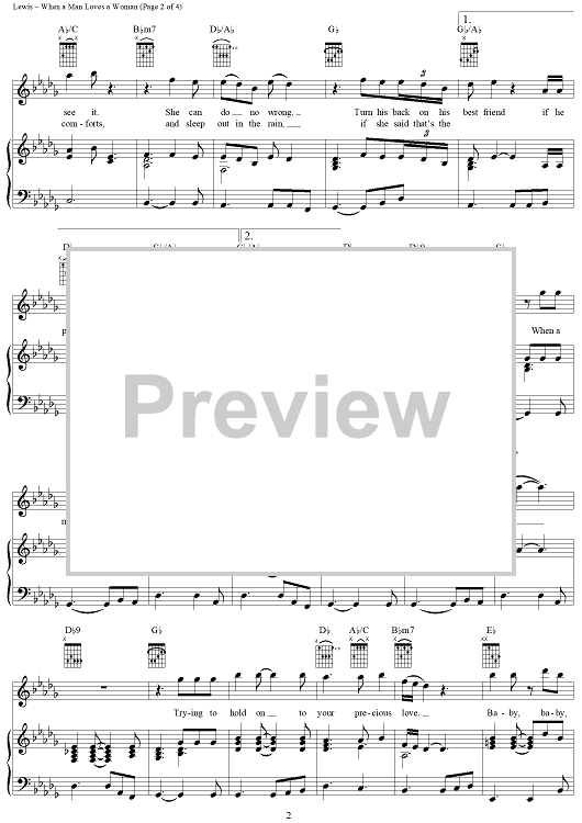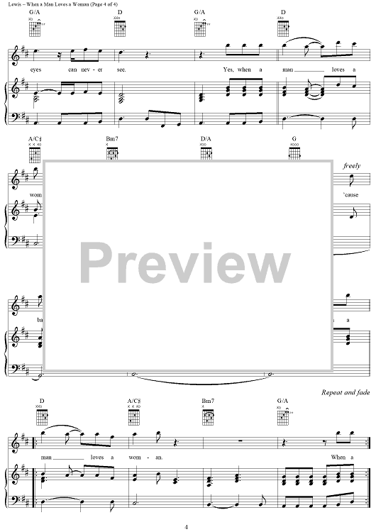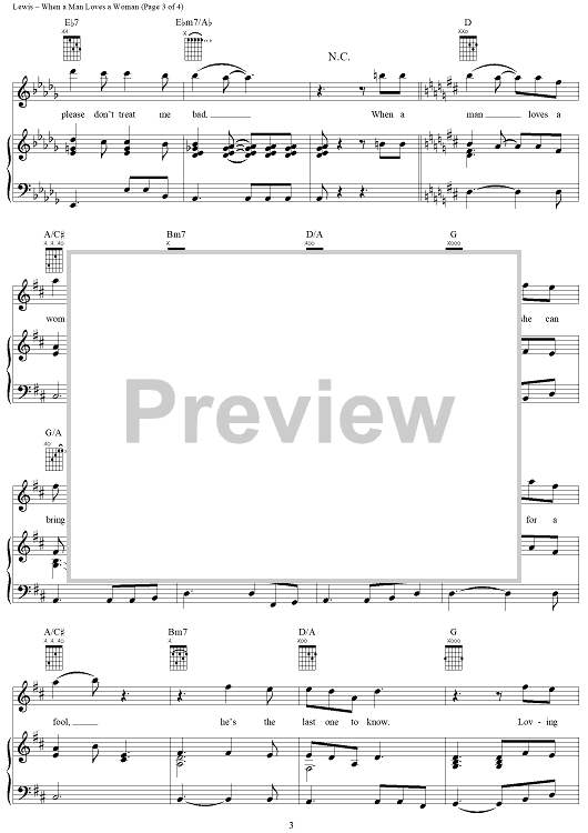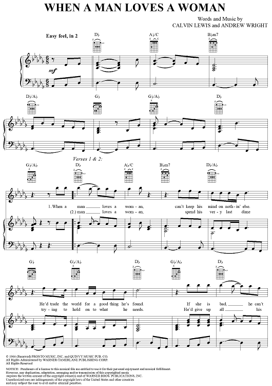 Digital Sheet Music for When a Man Loves a Woman by Calvin Lewis, Andrew Wright scored for Piano/Vocal/Chords; id:295111