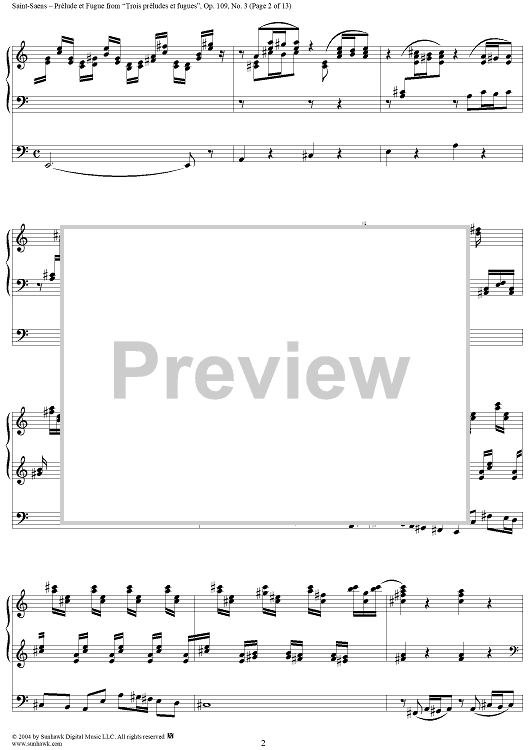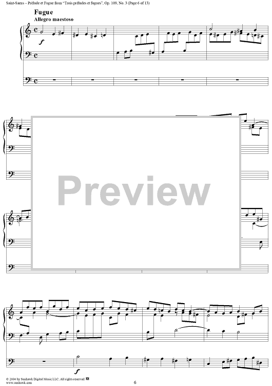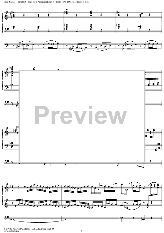 Digital Sheet Music for Prélude et Fugue in C Major, No. 3 from "Trois préludes et fugues", Op. 109 by Camille Saint-Saëns scored for Organ Solo; id:303370