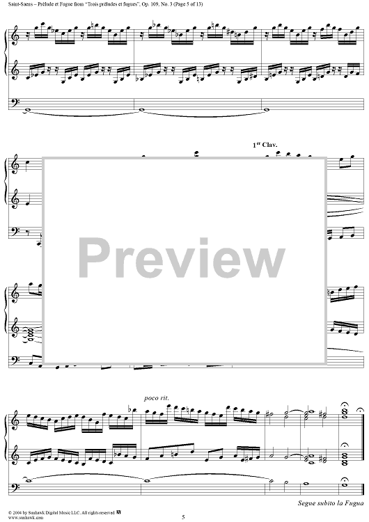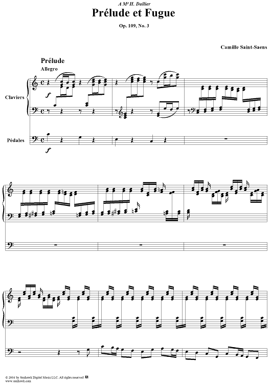 "Prélude et Fugue in C Major, No. 3 from "Trois préludes et fugues", Op. 109" Sheet Music by Camille Saint-Saëns