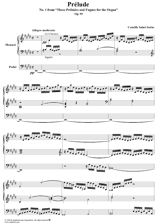 Digital Sheet Music for Prélude in B Major by Camille Saint-Saëns scored for Organ Solo; id:118287